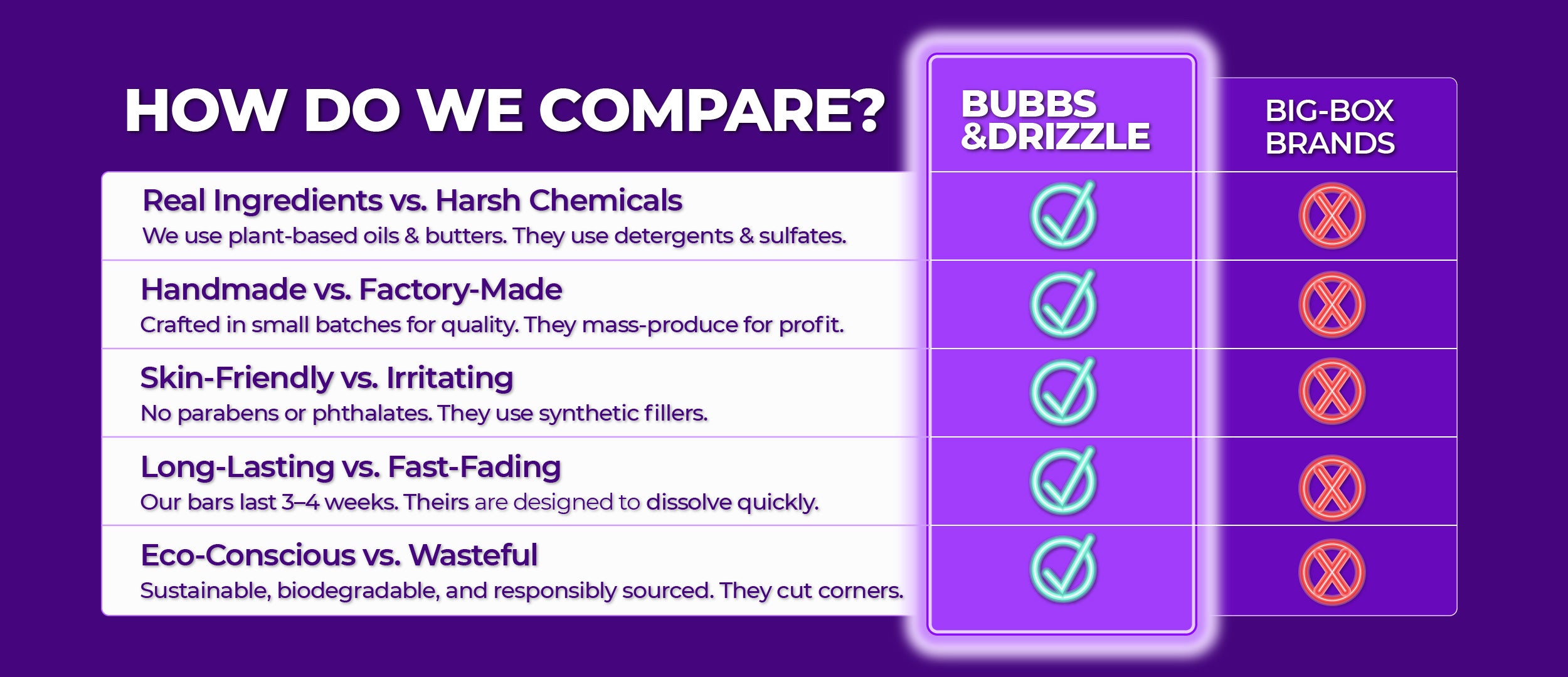 No harsh chemicals—just nourishing oils and butters that pamper your skin.